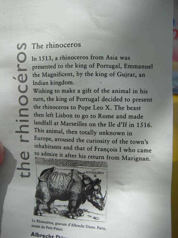 Also, not a lot of people know that a rhinoceros lived on the island for a few weeks in that year of 1516, en route as a gift from the king of Portugal to the then Pope Leo X. The animal died in a shipwreck on the next part of its journey, so it arrived in stuffed form when presented to the Pope. History does not record his reaction…